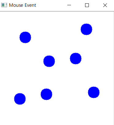 Mouse 함수는 왼쪽 버튼이 클릭되면 해당 위치에 크기가 15, 파란색으로 채워진 원이 그려지는 함수다. 입력받은 키가 ASCII 코드 27에 해당하는 Esc라면 생성된 창은 사라지게 된다. 위의 코드를 확장해서 플래그에 따라 원의 색상을 다르게 나타낼 수도 있다.