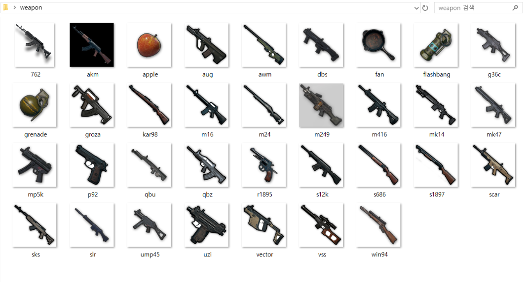 * 배틀그라운드 무기 일부를 이미지로 활용합니다.