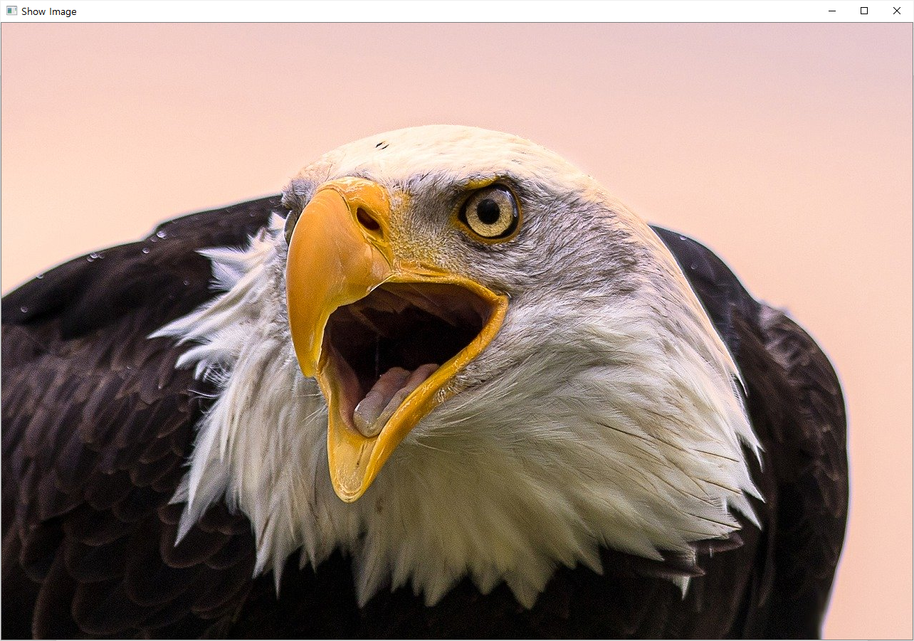 cv2.imshow('Show Image', img) imread에 의해 반환된 이미지 객체 img를 화면에 나타내기 위한 함수로 첫번째 인자에는 사진을 나타내는 윈도우의 이름, 두번째 인자에는 화면에 표시할 이미지 객체를 넣어주면 된다.