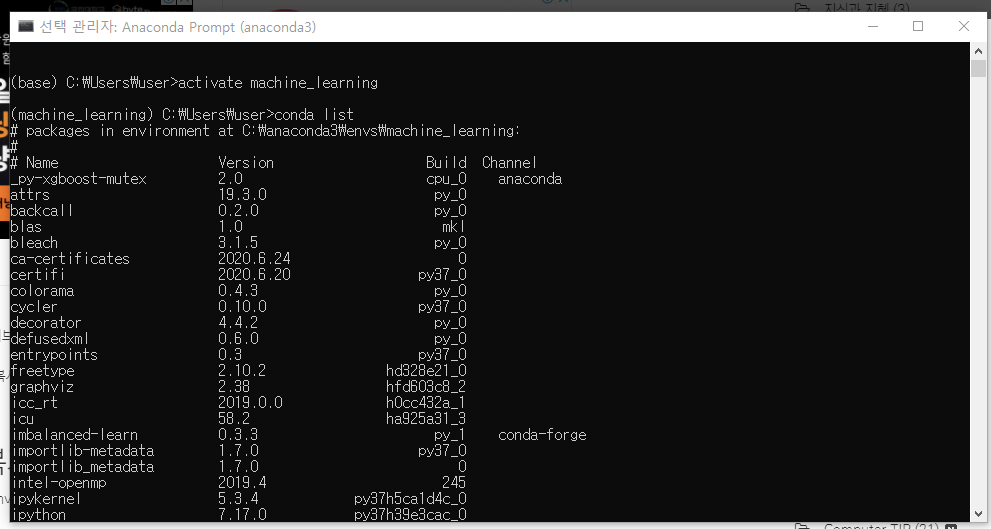최근 머신러닝에 대해서 공부를 하기 위해 아나콘다에서 가상환경을 만들어 머신러닝 패키지를 다운 받았다.