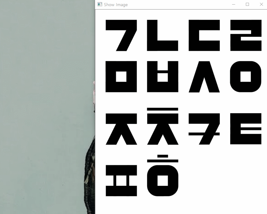 hangul.jpg 이미지를 불러와 img3 변수와 그에 필요한 전역변수들을 모두 초기화 해준다. 이후 setMouseCallback 함수로 마우스 이벤트를 발생시키기 전에 해당 이미지를 불러온다.