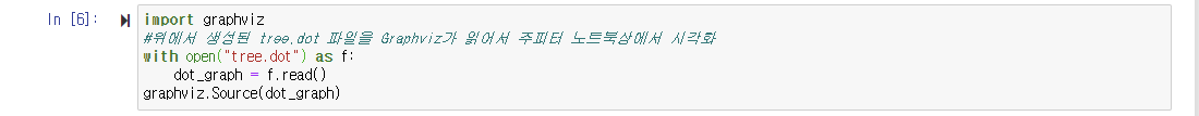 이후, "tree.dot"파일을 열고 graphviz.Source() 함수를 통해서 파일을 실행한다.