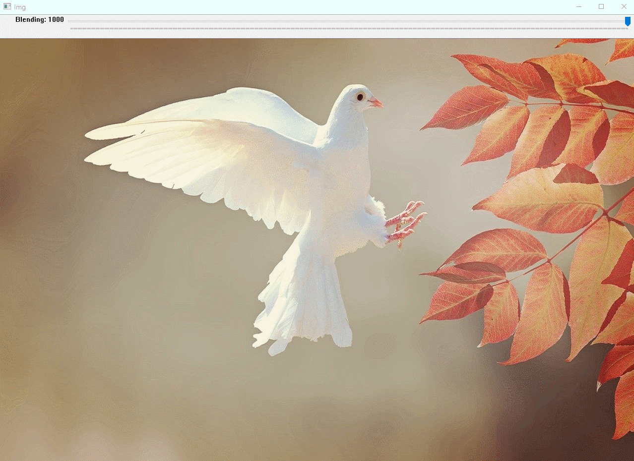 weight = cv2.getTrackbarPos('Blending', 'Img')