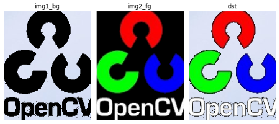 images = [img1_bg_rgb, img2_fg_rgb, dst_rgb]