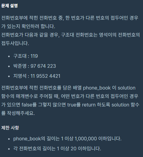 프로그래머스 전화번호 목록
