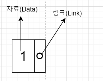 배열 리스트의 노드(원소)는 자료(Data)만 담고 있었지만 연결 리스트의 노드는 자료에 다음 노드로 연결되는 링크(Link)도 가지고 있어야 한다. 이때 맨 마지막 노드는 연결할 다음 노드가 없으므로 NULL값을 준다. 아래 그림은 연결 리스트에서의 노드값의 구조이다.