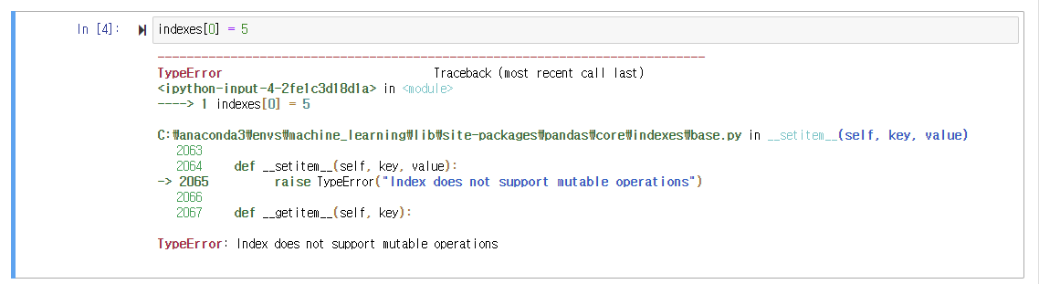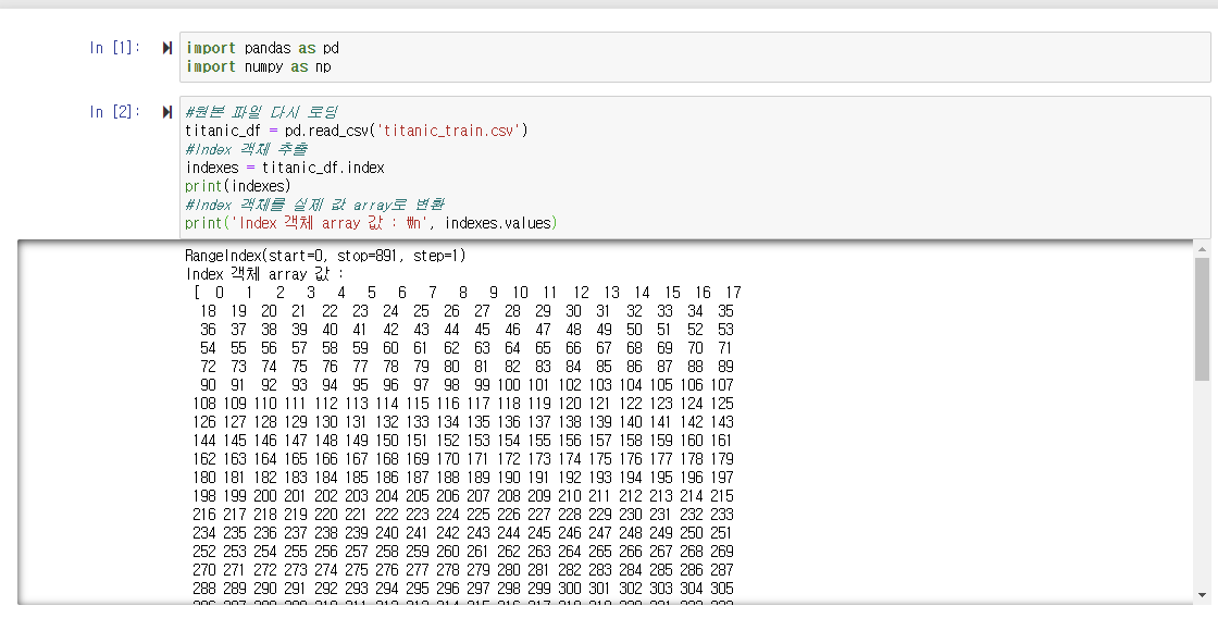 print('Index 객체 array 값 : \n', indexes.values)