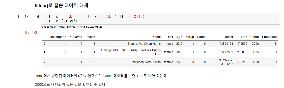 titanic_df['Cabin'] = titanic_df['Cabin'].fillna('C000')