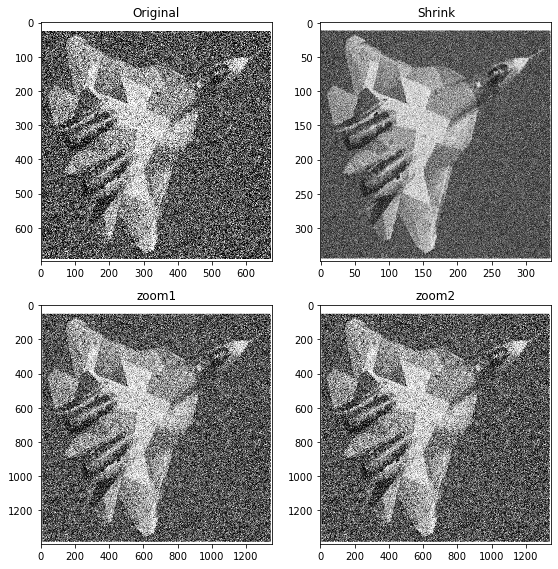 titles = ['Original', 'Shrink', 'zoom1', 'zoom2']
