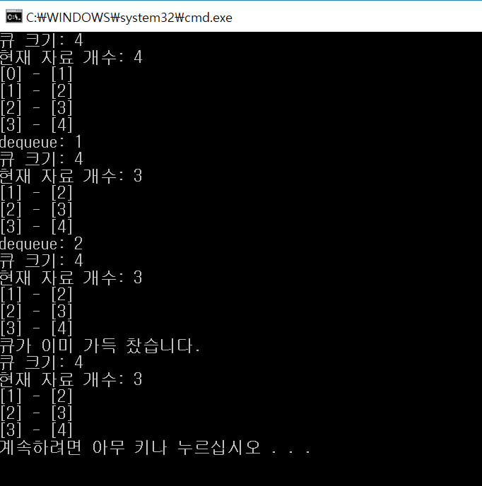 cout << "큐가 이미 가득 찼습니다." << endl;