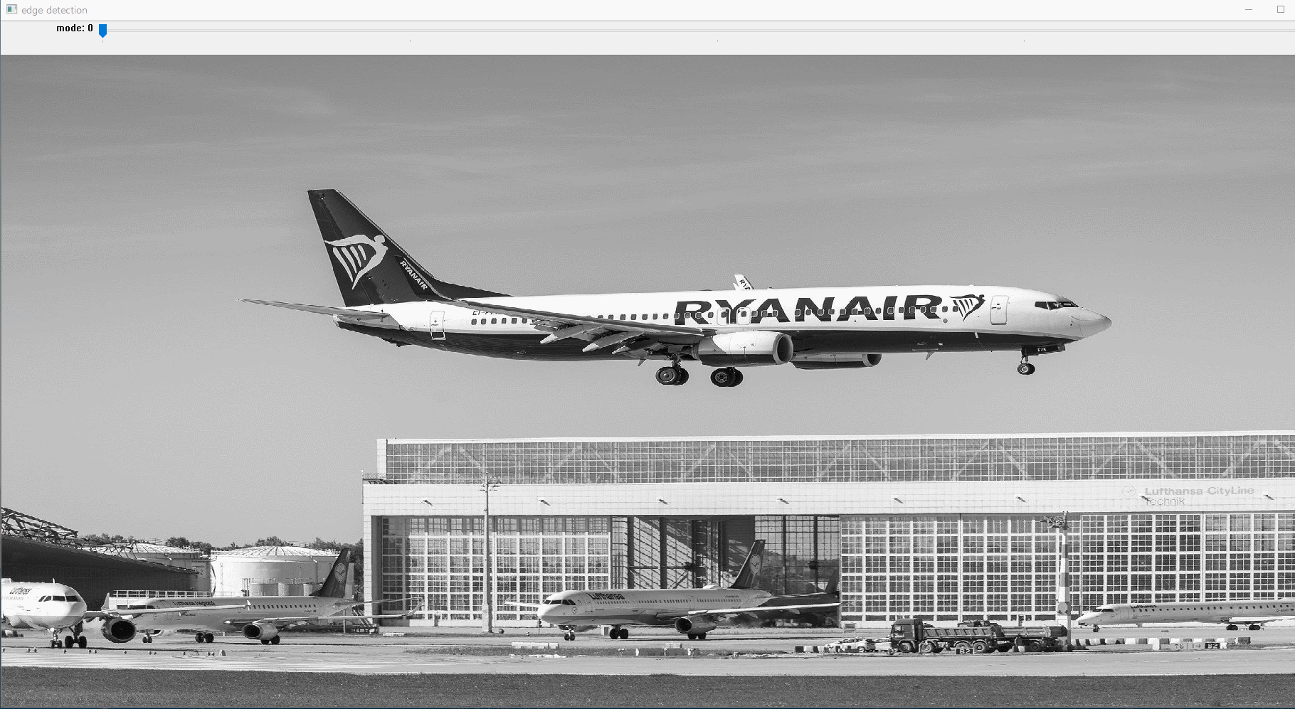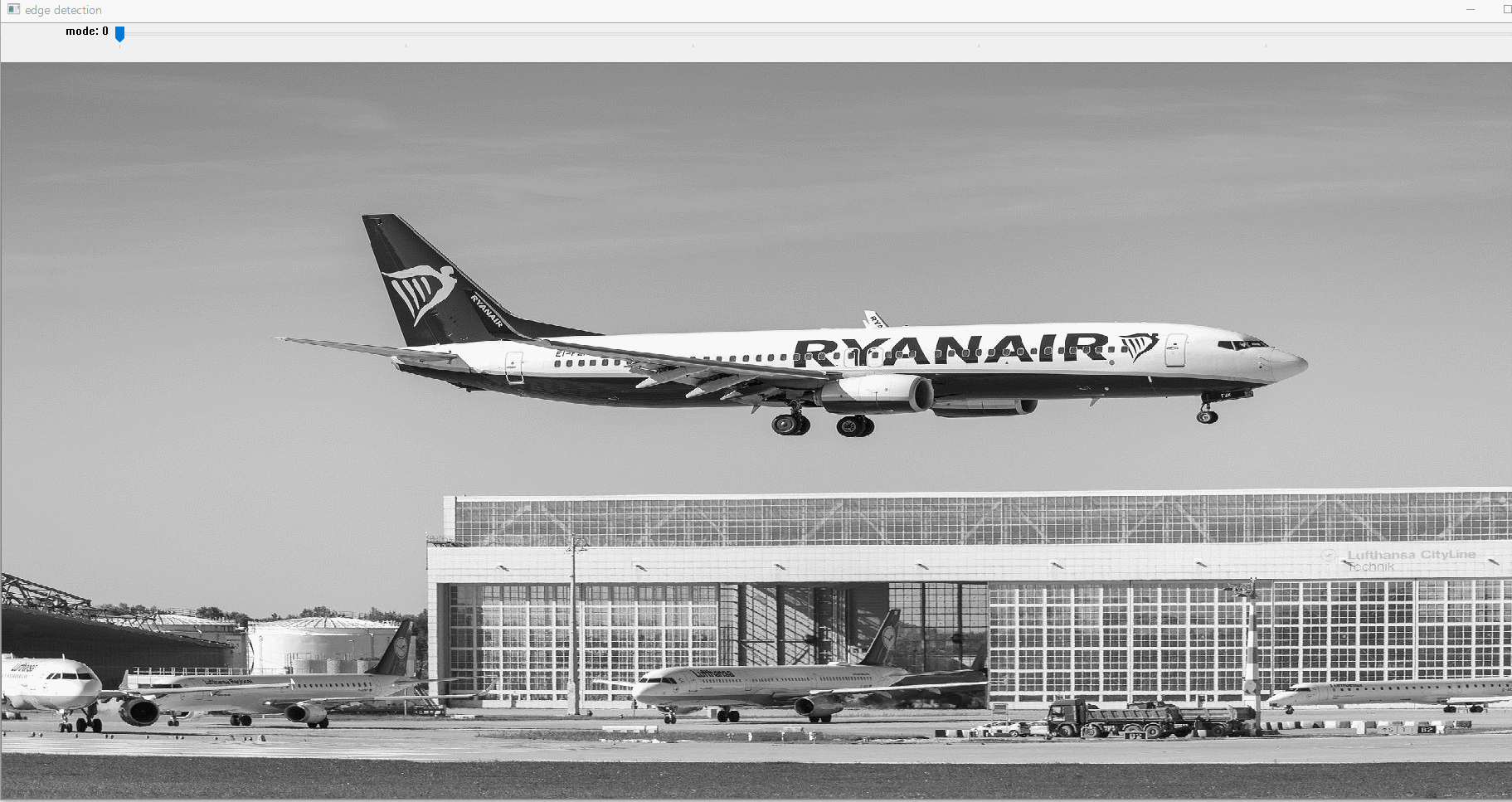 img = cv2.imread('ryanair-5249631_1920.jpg', cv2.IMREAD_GRAYSCALE)