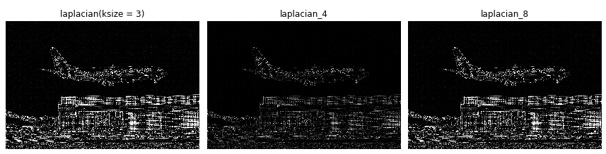 titles = ['original', 'sobel', 'laplacian(ksize = 1)', 'laplacian(ksize = 3)', 'laplacian_4', 'laplacian_8']