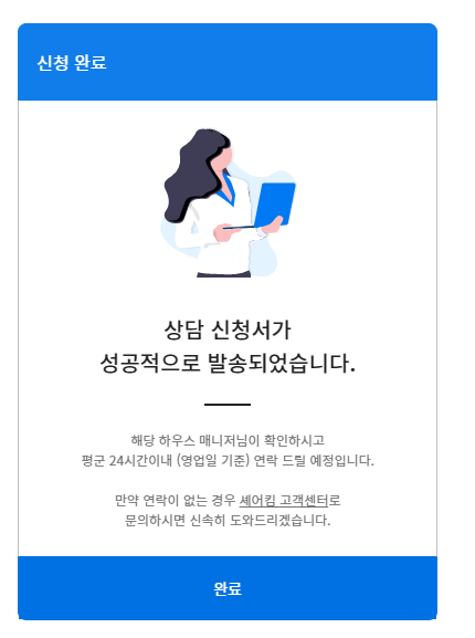 상담 신청서가 발송되면 카톡으로 1:1 카톡이 날라오고 상담 후 진행되는 것 같다.