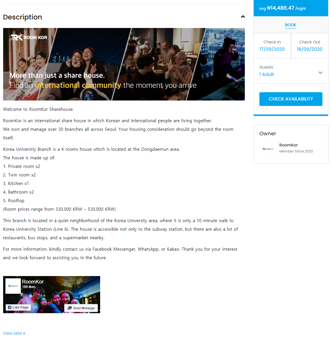 셰어하우스 사장님의 업소 소개글
