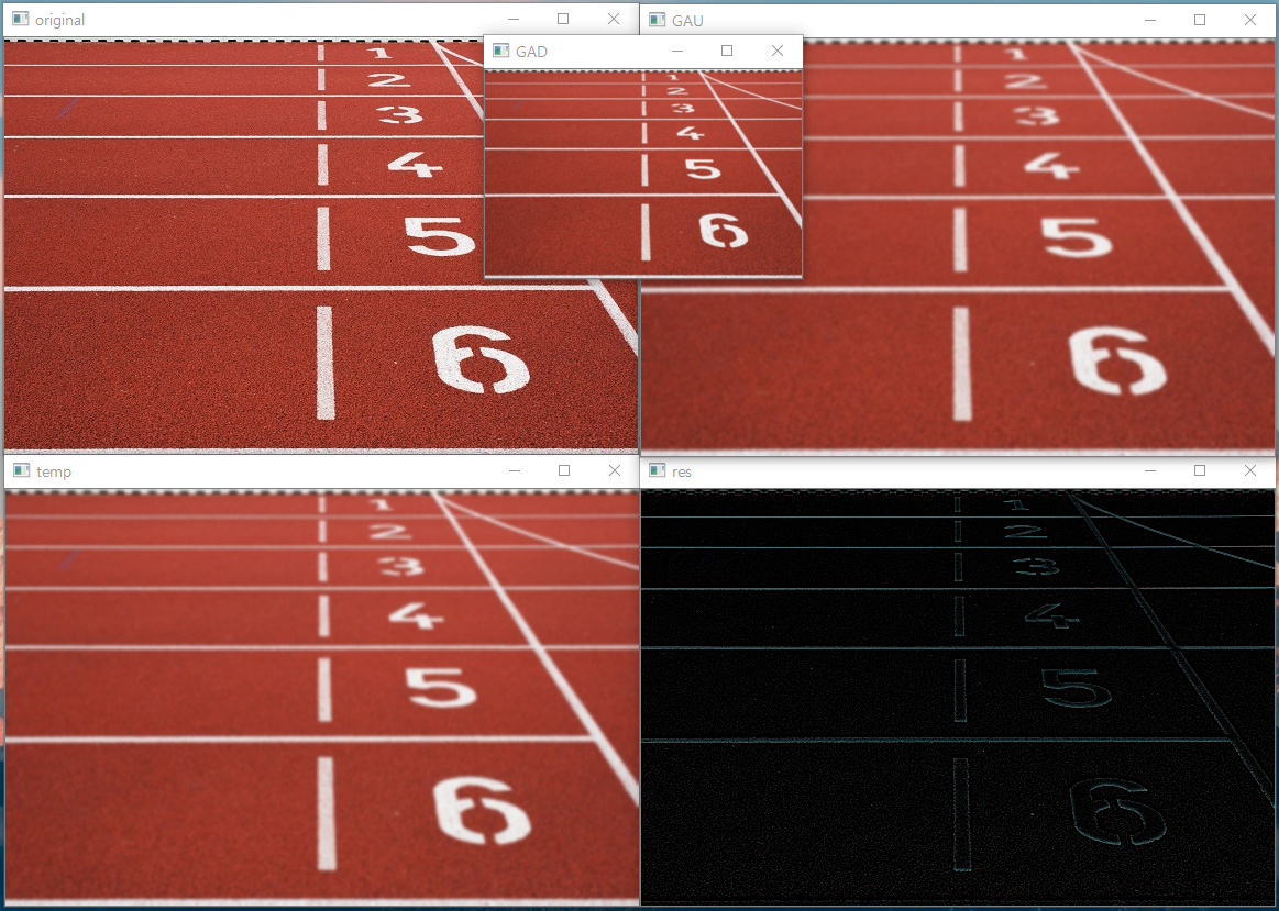 원본 이미지의 라플라시안 피라미드를 구한 것이므로 해당 단계로 만들어진 이미지는 라플라시안 피라미드의 최하위 단계이다. 그 상위 단계 이미지는 같은 방식으로 가우시안 상위 단계 이미지를 사용하여 만들면 된다.