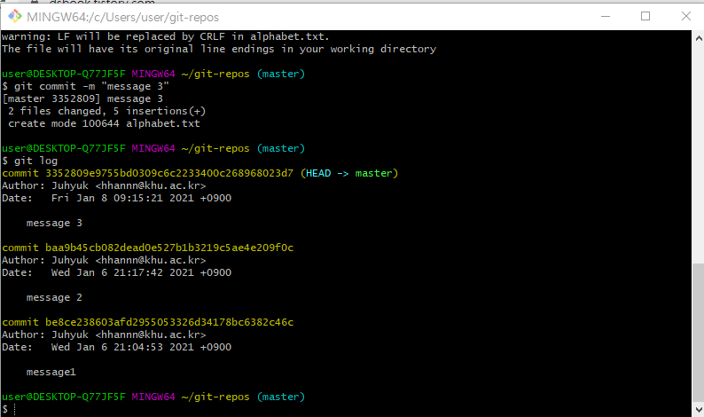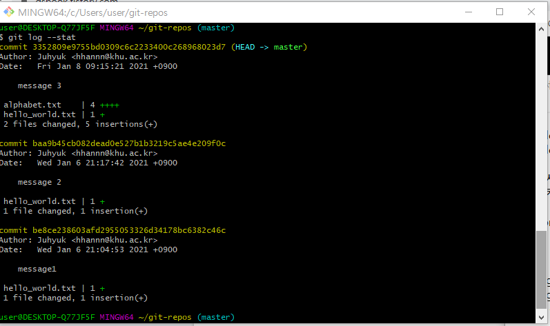 앞선 글에서는 그동한 커밋한 내용들을 git log를 이용해서 확인을 했었다.