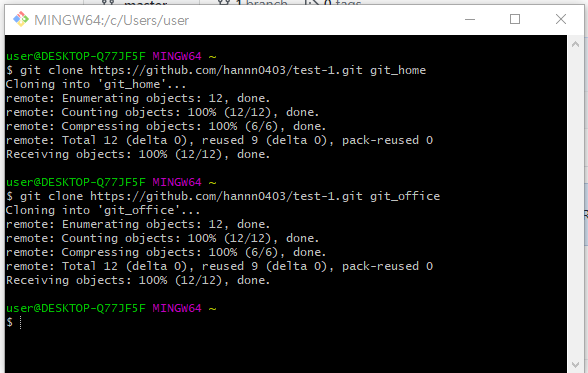 git_home과 git_office 디렉토리에서 별도의 작업을 하고 GitHub에 올려보자.