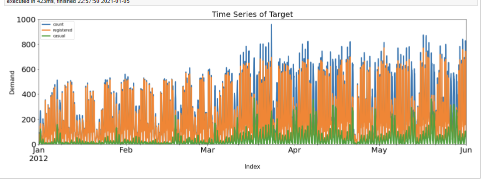 - casual : 자전거 서비스에 등록하지 않은 사람들의 자전거 사용량을 의미한다.