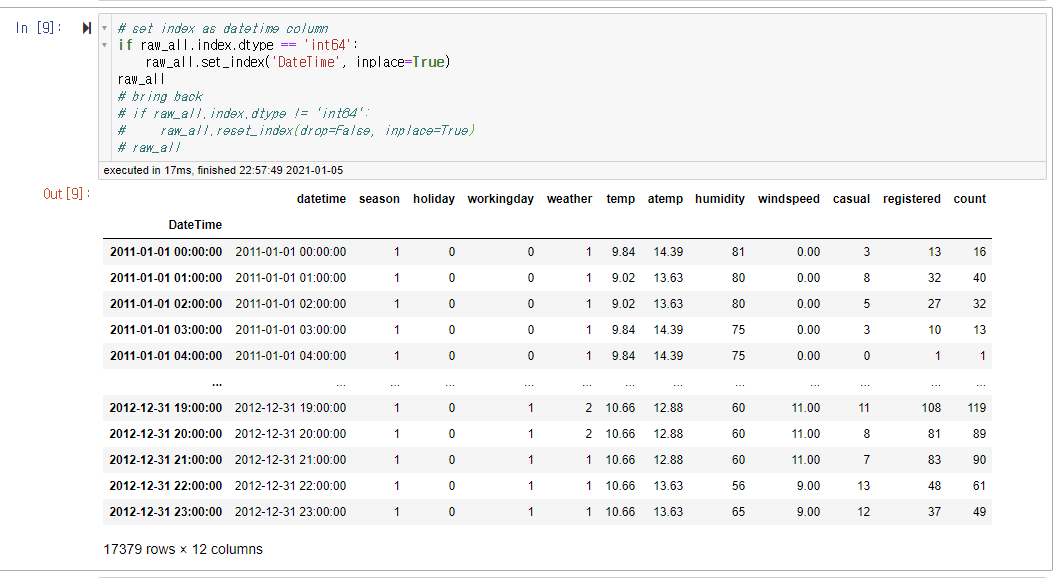 이후에는 set_index() 함수를 통해서 datetime 형식으로 되어있는 데이터를 인덱스로 설정한다.