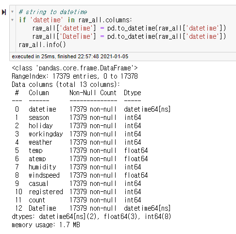 .info()를 통해서 확인했을 때 가장 첫번째 Column의 데이터 형식이 datetime64[ns]인 것을 확인할 수 있다.