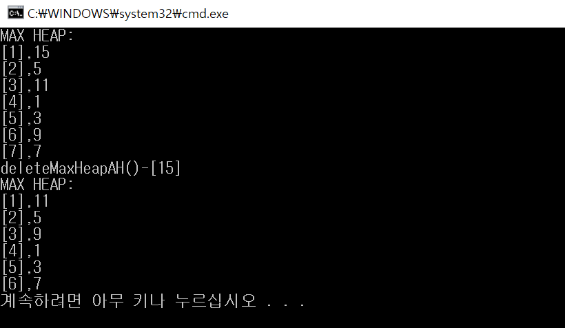 pNode = deleteMaxHeapAH(pMaxHeap);