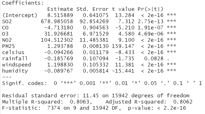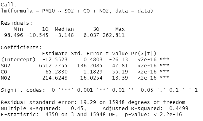 summary(lm(PM10 ~ SO2 + CO + NO2, data = data))
