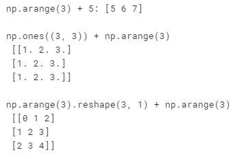 print("np.ones((3, 3)) + np.arange(3)\n",np.ones((3, 3)) + np.arange(3),'\n')