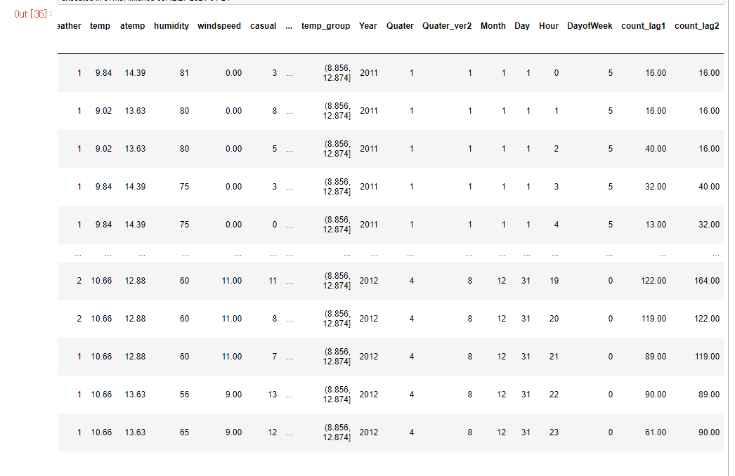 이전 포스팅에서, 각 분기를 datetime 객체에서 추출했고, 그것을 별도의 특성으로 만들어 DataFrame에 추가했다.