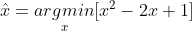 대괄호 안에 있는 식은 ( x - 1) ^ 2이므로, x = 1인 경우에 최솟값 0을 가진다. 이런 경우에 x_hat에는 대괄호 안에 있는 식을 최솟값으로 만드는 x의 값인 1을 x_hat에 할당한다.