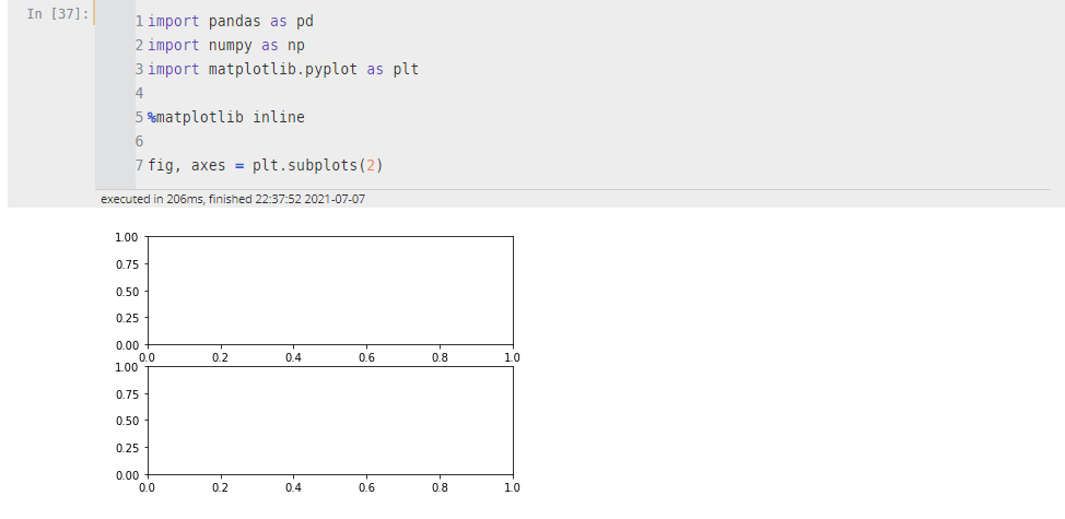 여기에서 fig는 전체 그래프를 저장하고 있는 변수, axes는 그 안의 subplot들을 저장하고 있는 변수라고 보면 된다.
