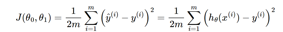 위의 hypothesis function에서 세타들을 파라미터라고 한다. 파라미터에 어떤 값이 들어가느냐에 따라 h(x)의 y절편과 기울기가 달라진다. 그렇다면 이 최적의 파라미터들을 어떻게 찾을 수 있을까?