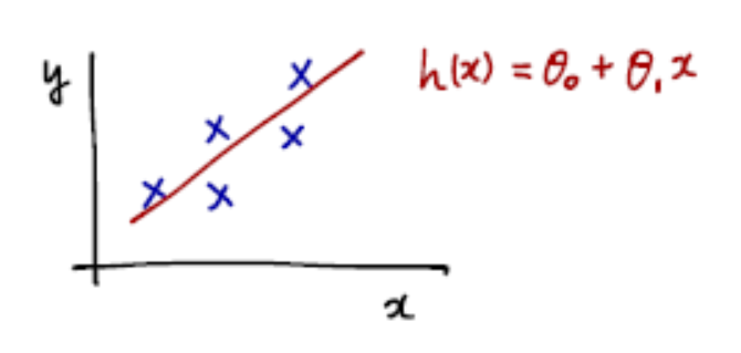 이 방정식이 '직선' 형태를 띄기 때문에 세타값들을 지정하여 y값을 구하는 것이다. 즉 세타 값들을 조정하여 점들을 가장 잘 대표하는 직선을 찾아내는 것.