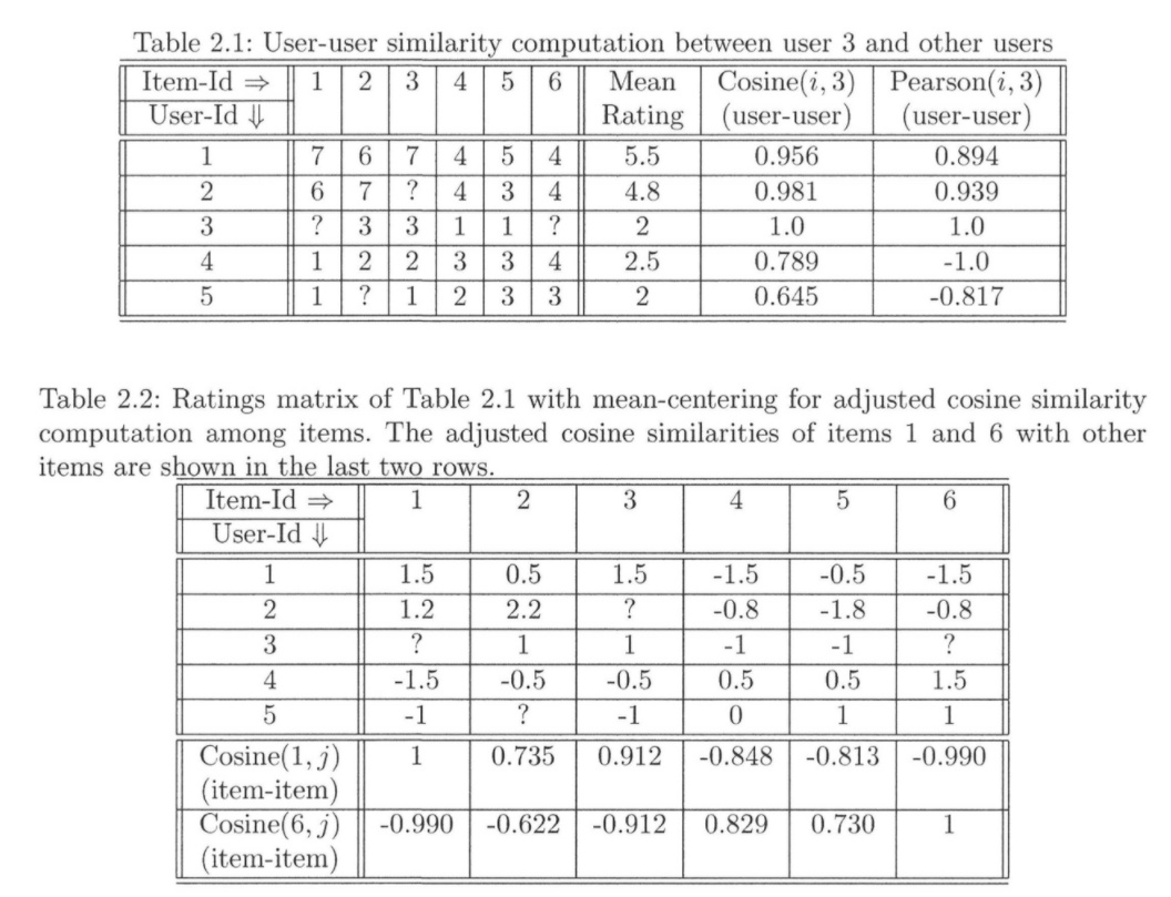 -> 일반적으로 평균 센터링의 피어슨 상관 계수는 bias 조정 효과 때문에 원래 코사인 값보다 적합함