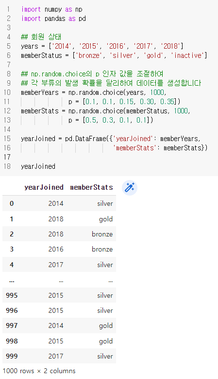 위와 같이 모든 회원에게 특정 가입 연도를 무작위로 부여하고, 회원의 상태 정보는 부여된 가입연도에 따라 결정된다.