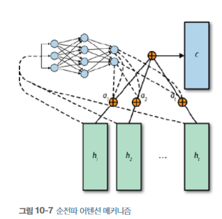 어텐션 가중치 : 어떤 정보가 언제 중요한 지, 단계마다 학습되는 가중치. 서로 다른 시간 단계의 정보를 결합하는 방법을 학습할 수 있게 해준다. 출력 X 이전 단계의 은닉 상태 = context vector로 변환한다.