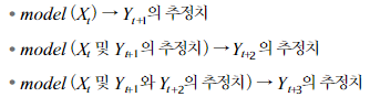 모델의 출력을 다시 입력으로 주입하는 접근 방법이다. 보다 먼 범위를 예측할 수 있다.