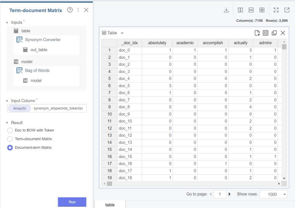 브라이틱스에서는 Term-document matrix라는 함수를 통해