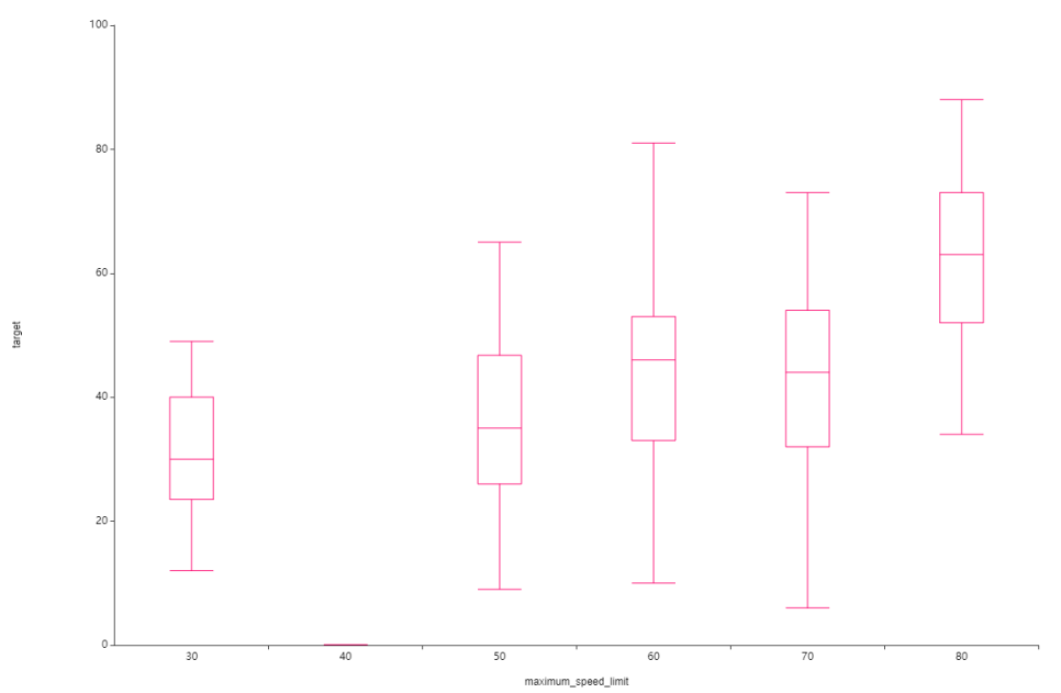 앞에서 빈도수를 살펴봤을 때, 제한속도 40 값의 target이 적었는데