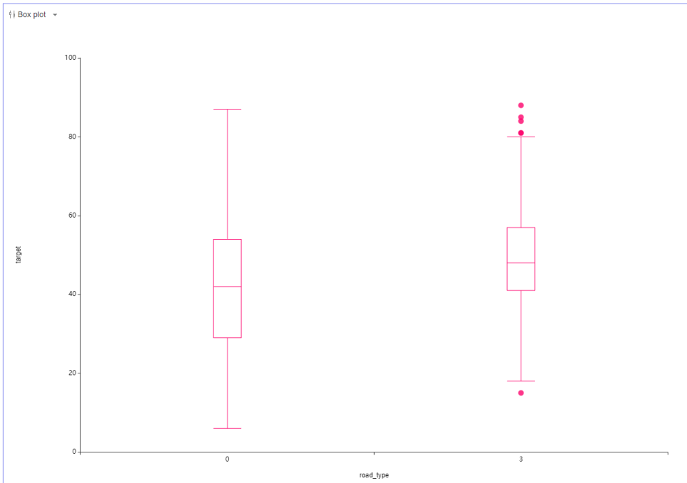 road_type별로 target을 상자수염그래프로 알아봤을 때,
