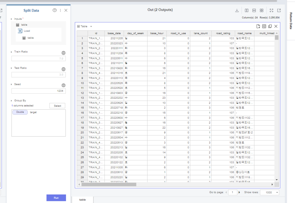 그 다음은 split data 함수를 통해
