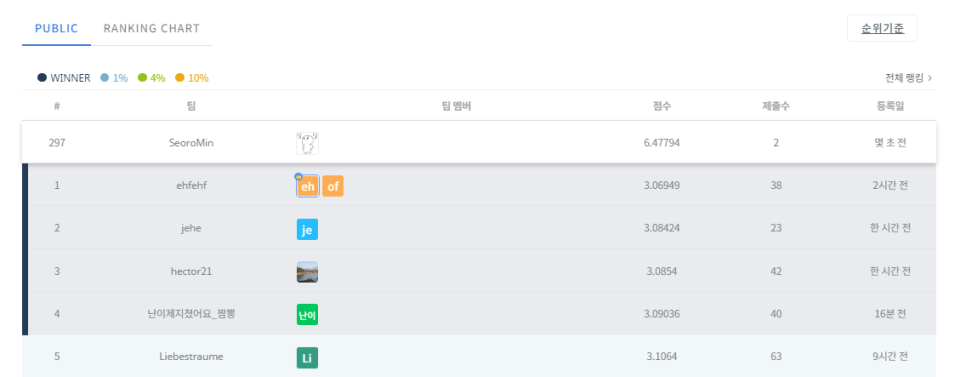 부착해주고 나서 csv형태로 dacon에 제출했습니다!