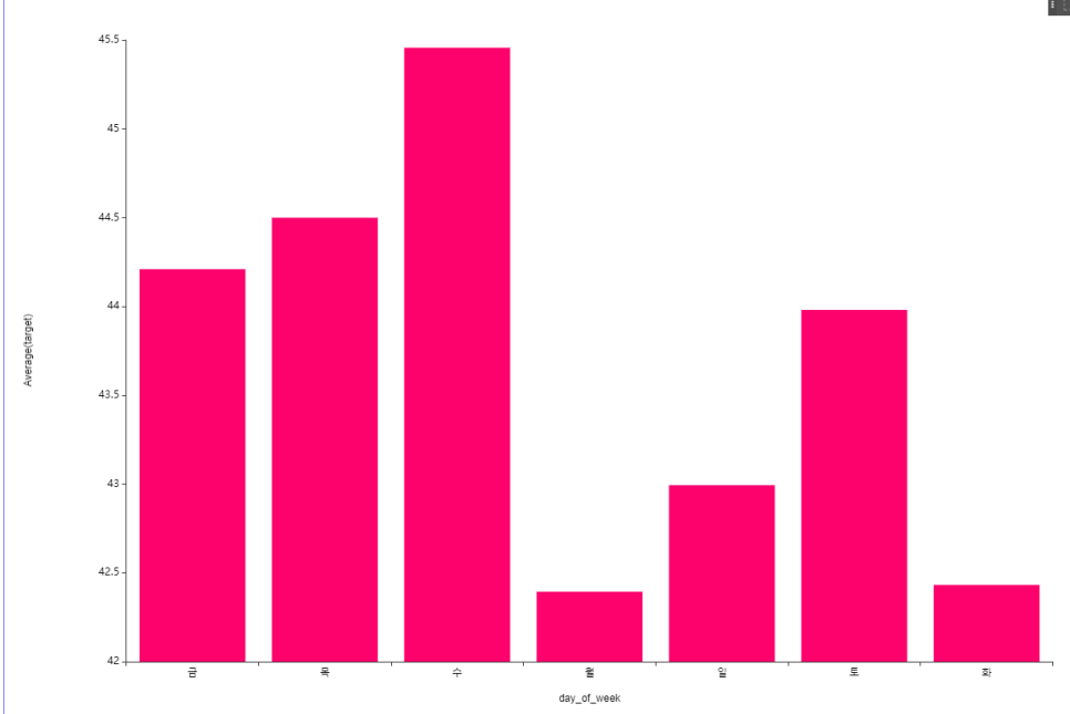 월요일이 대체로 적고 수요일이 높은 것을 볼 수 있습니다.