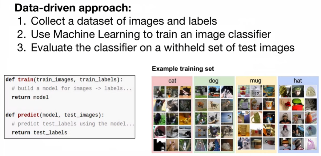 data와 label을 통해 학습을 시키고 test image set에 대해 학습시킨 것들을 평가함
