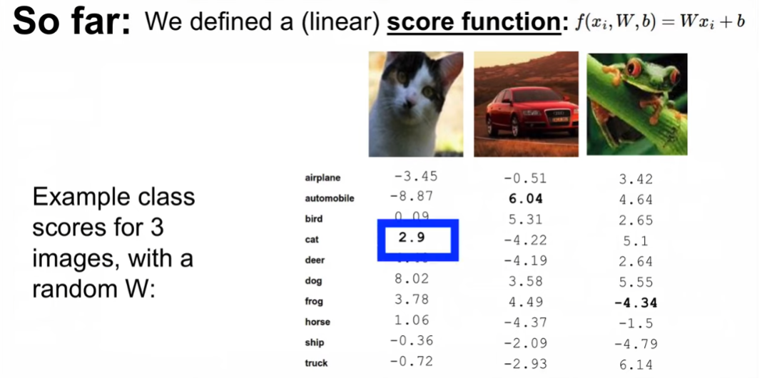 결국 우리가 한 것은 score function을 정의한 것