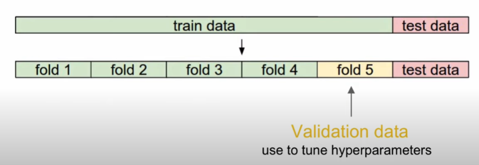 validation data를 따로 설정하여 하이퍼 파라미터를 체크함(test data는 건들면 안됨 -> 일반화 성능)