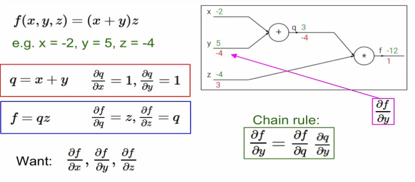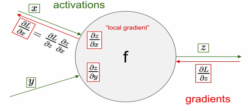 local gradient와 backward gradients를 곱해줌으로써 최종 gradient를 구할 수 있음.
