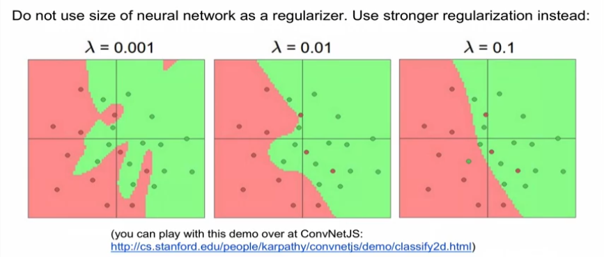 data의 과적합을 방지하기 위해서는 network를 작게 만드는 것이 아니라 규제 값을 더 높여줘야 한다.