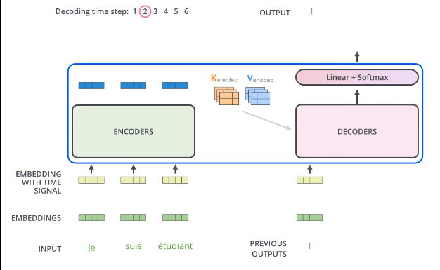 - Encoder를 지나온 block이 key value를 가지고 decoder에 각각 영향을 미쳐서 output이 나오게 됨.