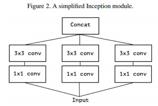 - Inception module에 대한 고찰로 탄생한 모델. cross-channel correlations와 spatial correlations를 독립적으로 계산하기 위해 고안된 모델. => 새로운 Inception module 제안.