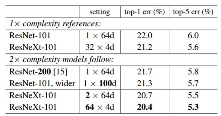 - ResNext-101, ResNet-101 wider, ResNet 200 순으로 성능이 좋았기 때문에 cardinality > width > deep 순으로 중요함.